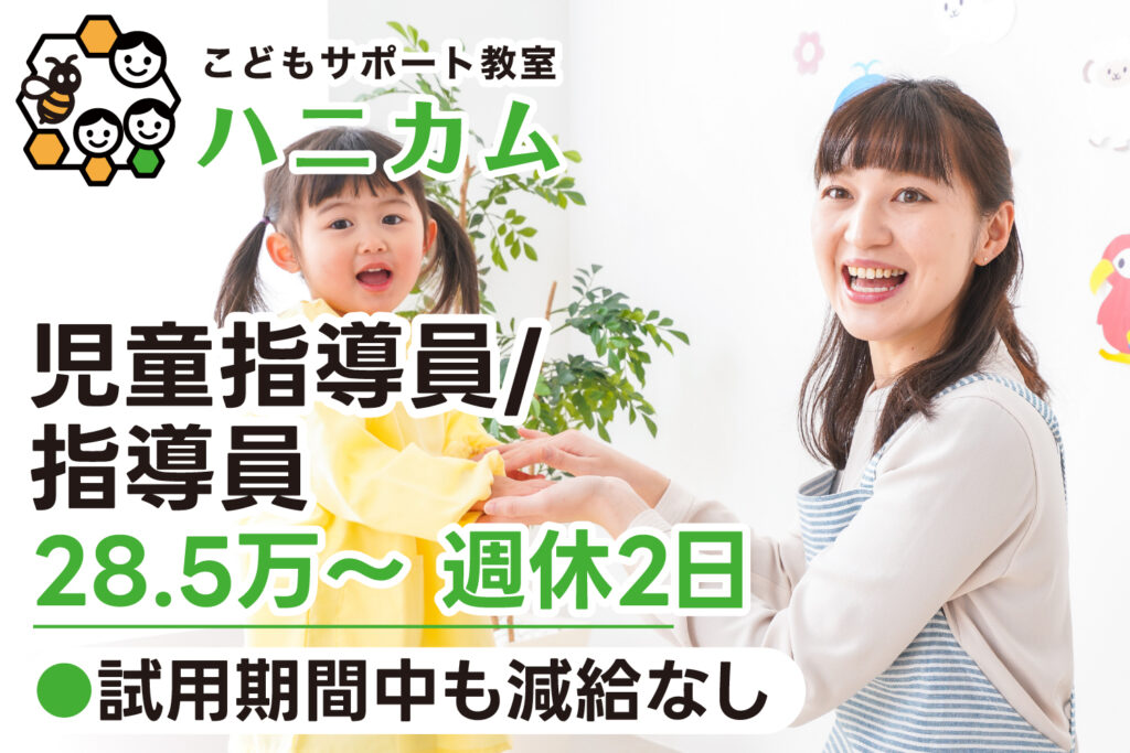【研修期間中も減給なし◎28.5万〜|正社員】こどもサポート教室ハニカム|児童指導員/指導員募集
