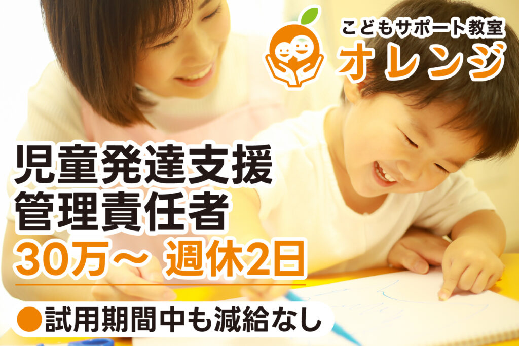 【研修期間中も減給なし◎30万〜|正社員】こどもサポート教室オレンジ|児童発達支援管理責任者募集
